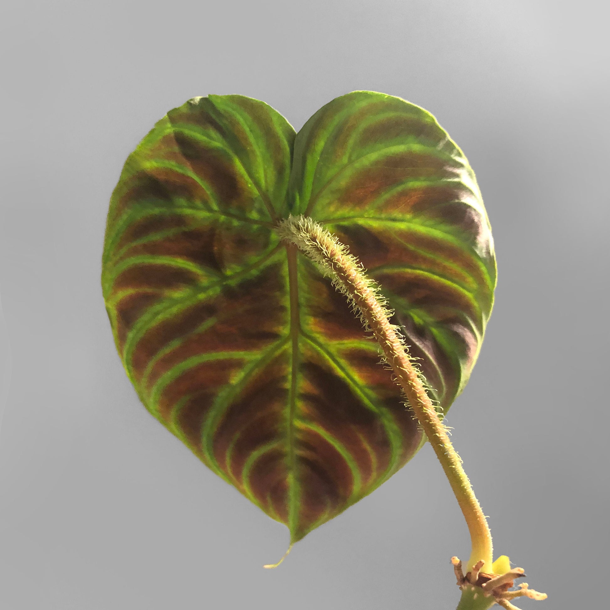 The first two photos showcase my mother plant's leaf, a velvety green leaf with a gorgeous red back and hairy petiole.